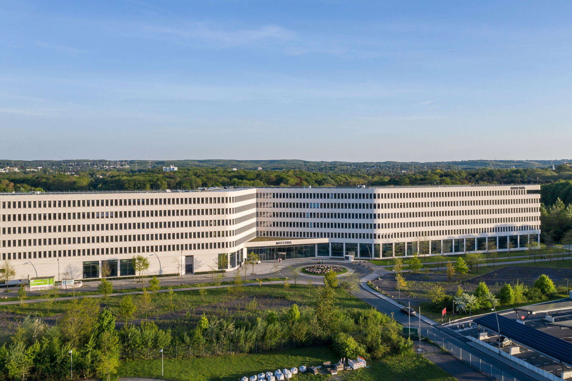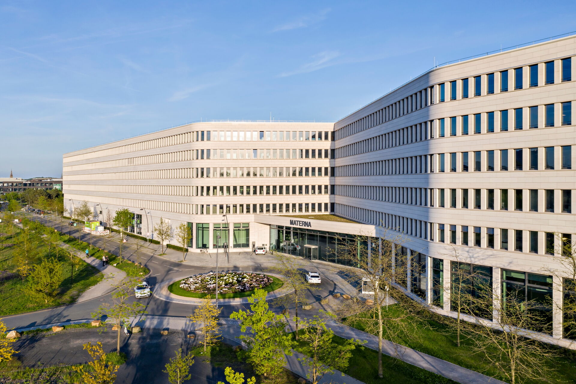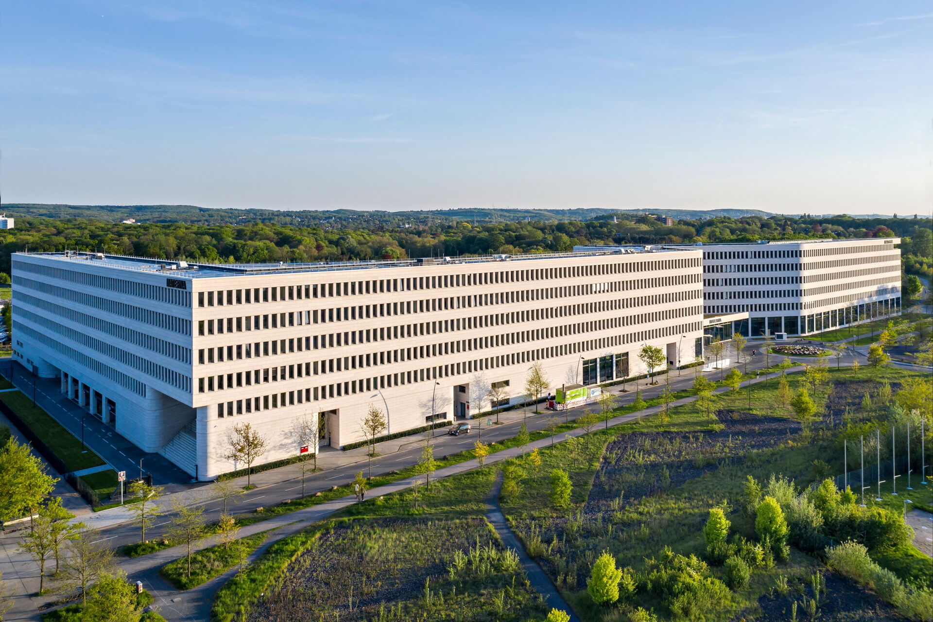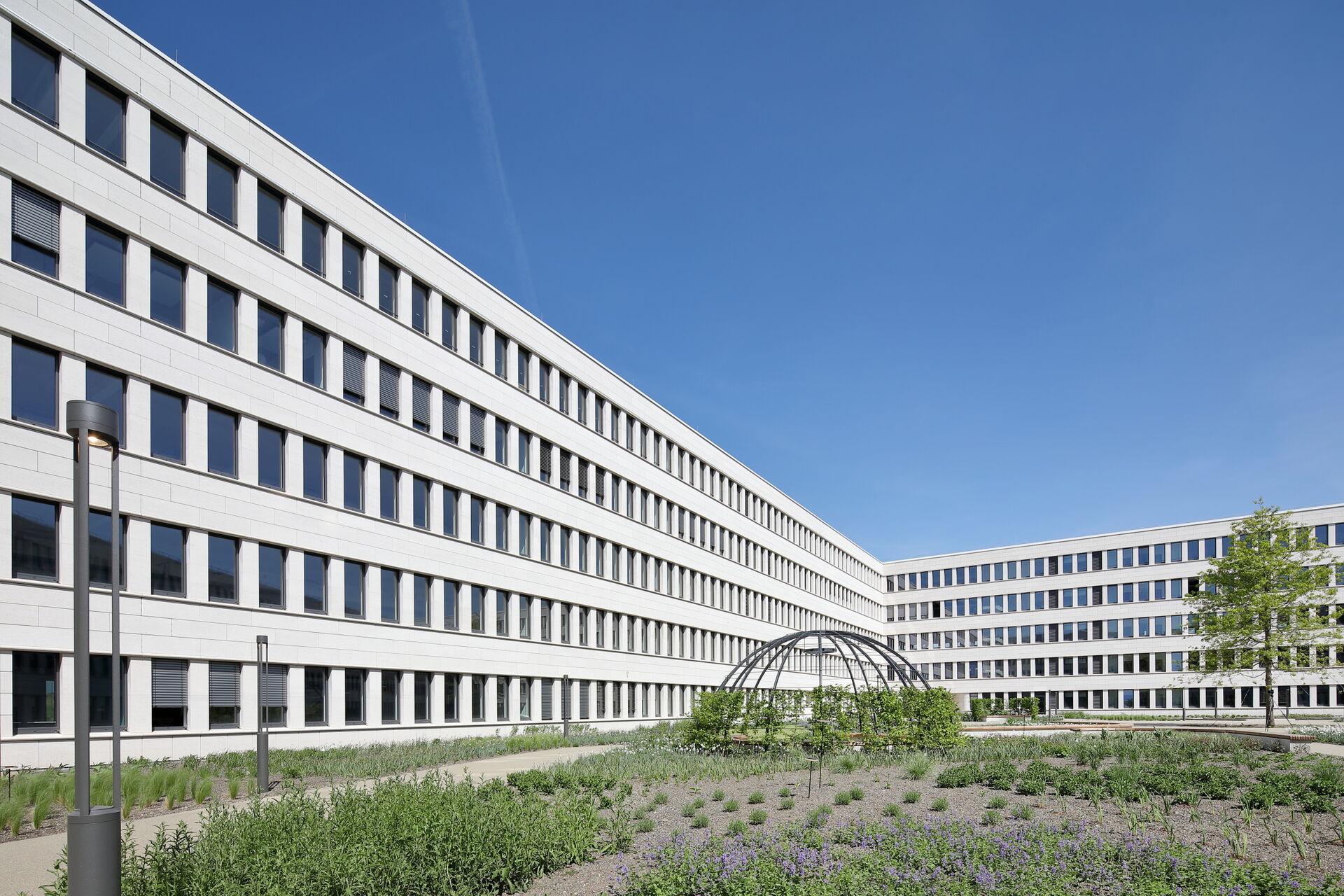 - 1.771 m² – Pfosten-Riegel-Warmfassade Schüco FWS 60 SI, teils mit gebogenen Scheiben