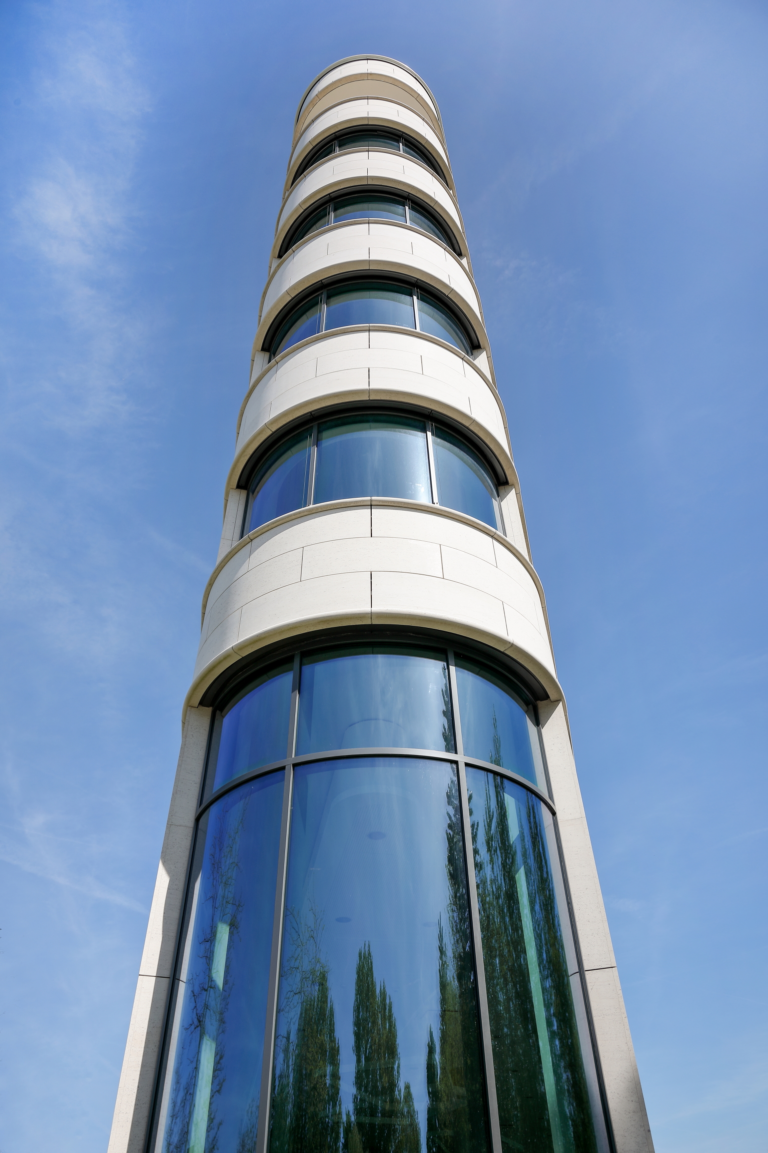 Pfosten-Riegel-Warmfassade Schüco FWS 60 Si teils mit gebogenen Scheiben