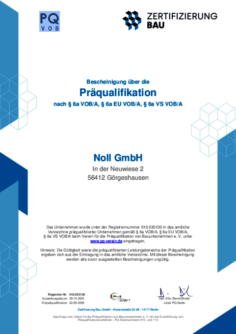 Zertifikat Präqualifizierung PQ VOB